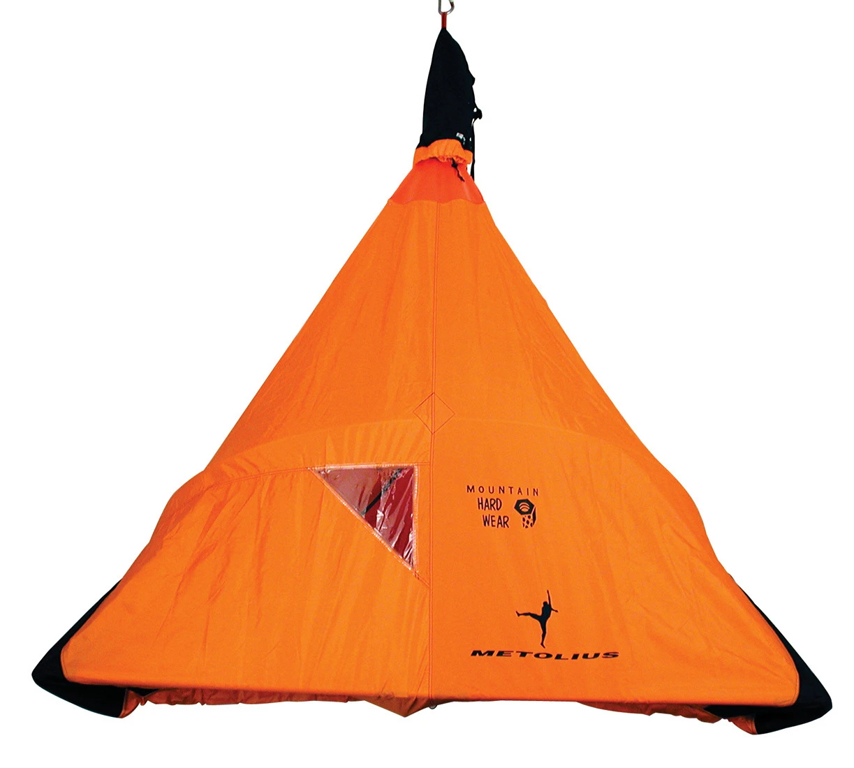 The Bomb Shelter Fly incorporates Durathane haul bag material into the top cap and an aircraft-quality 6061-T6 aluminum clip-in point to securely anchor the portaledge and insure a leak-proof seal. There is no webbing to wick water through the fly. The main body is constructed from durable polyurethane-coated 420d Oxford and has all the seams hot taped. There is an aluminum storm pole to create more space inside the fly. A window allows the user to view the conditions outside without letting the weather inside. A heavy-duty, Jr. Ballistics abrasion skirt protects the area on the fly between the ledge and the wall from abrasion. All four corners are double reinforced with Durathane™ haul bag material for maximum durability. Includes an integrated, compression stuff sack.