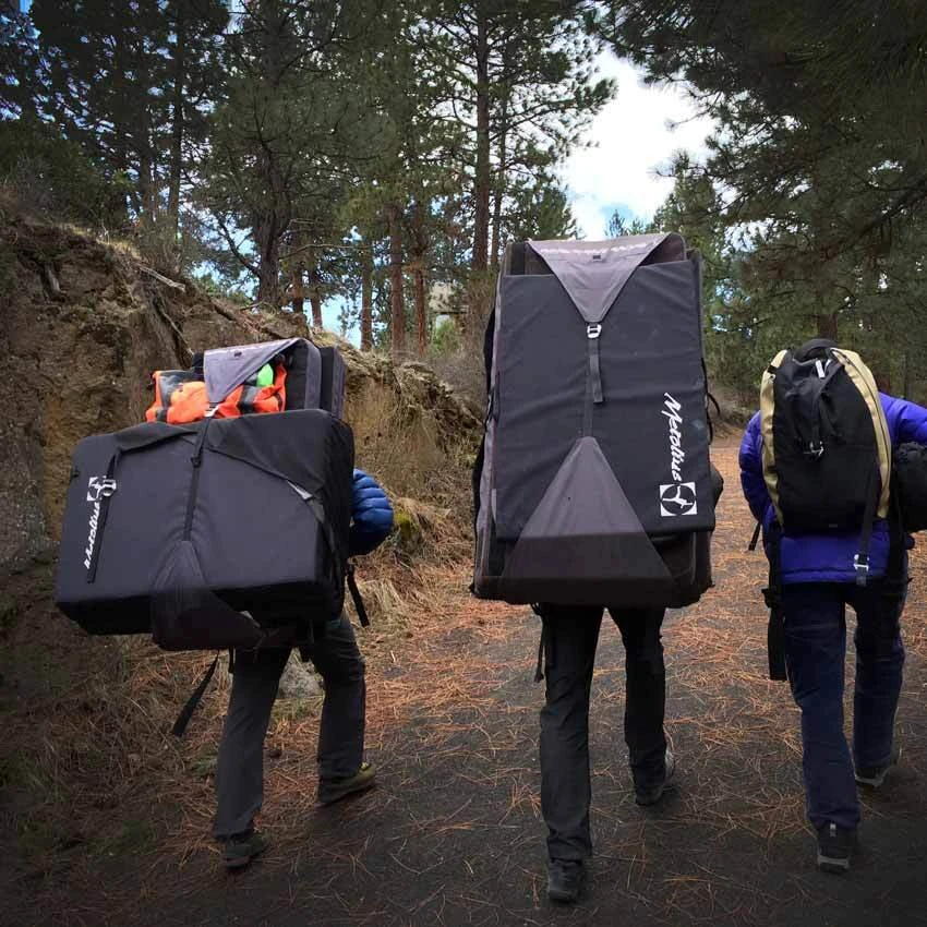 The Shortstop pad also nests easily inside standard or full-size crash pads and, because of the handles, it can also be used as a spotting shield.
