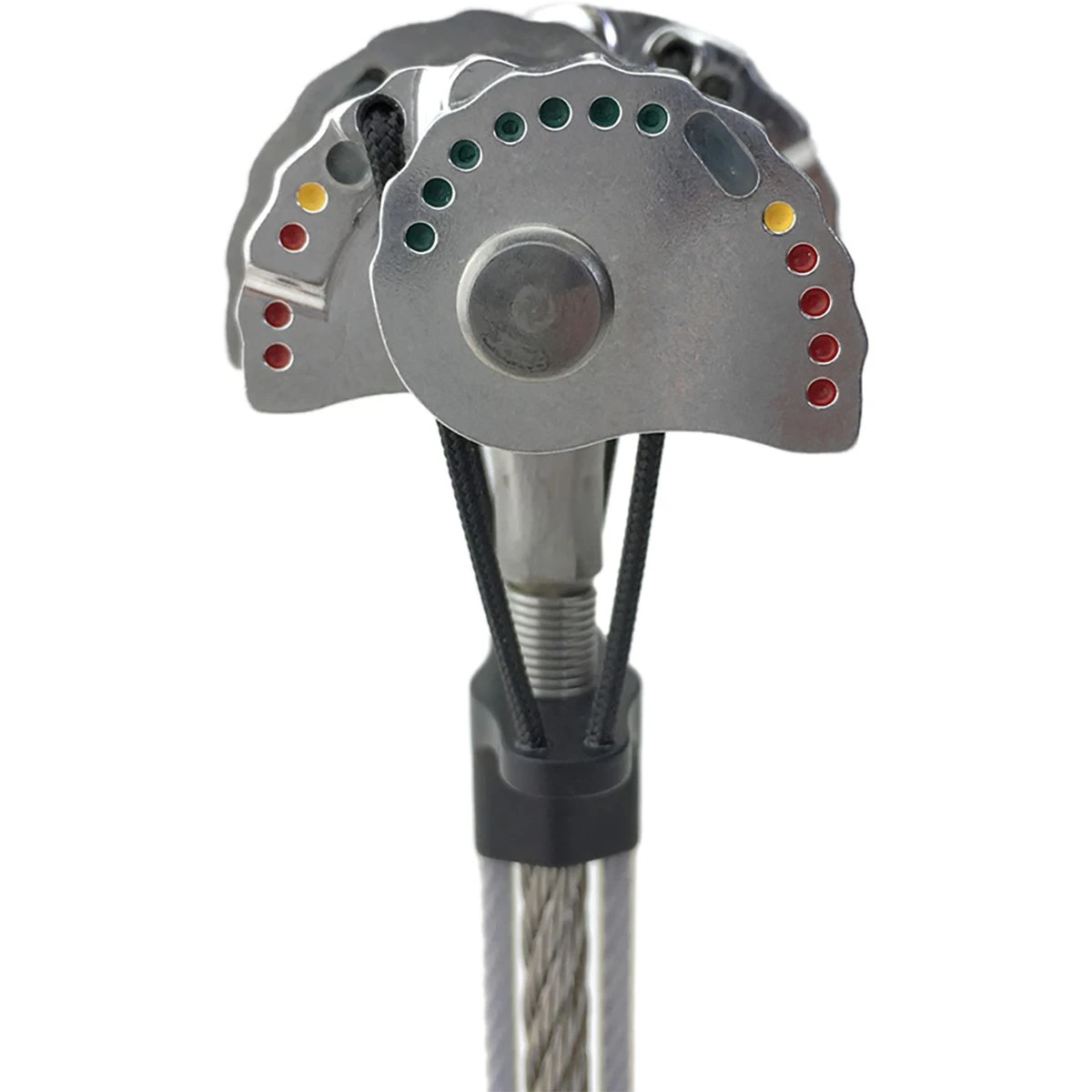 The Ultralight Offset Master Cam is a version of Metolius’s new Ultralight beauties, now crafted with offset lobes that work better in climbs with flares and scars. These cams are 40% lighter than most cams, and their lobes use stops for extra security in cracks. The lobes also have Range Finders with green-to-red dots along the sides that assist your placements. Color-coded by size, the Ultralight Offset Master Cam is easy to find on your rack so you can plug and send. Metolius made it easy for you to replace the Monster Sling after a few seasons.